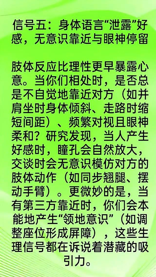 普通朋友碰下手都弹开三米远,可当你俩挤电梯都不躲,递奶茶总擦过指尖,坐沙发腿挨着腿也自然。